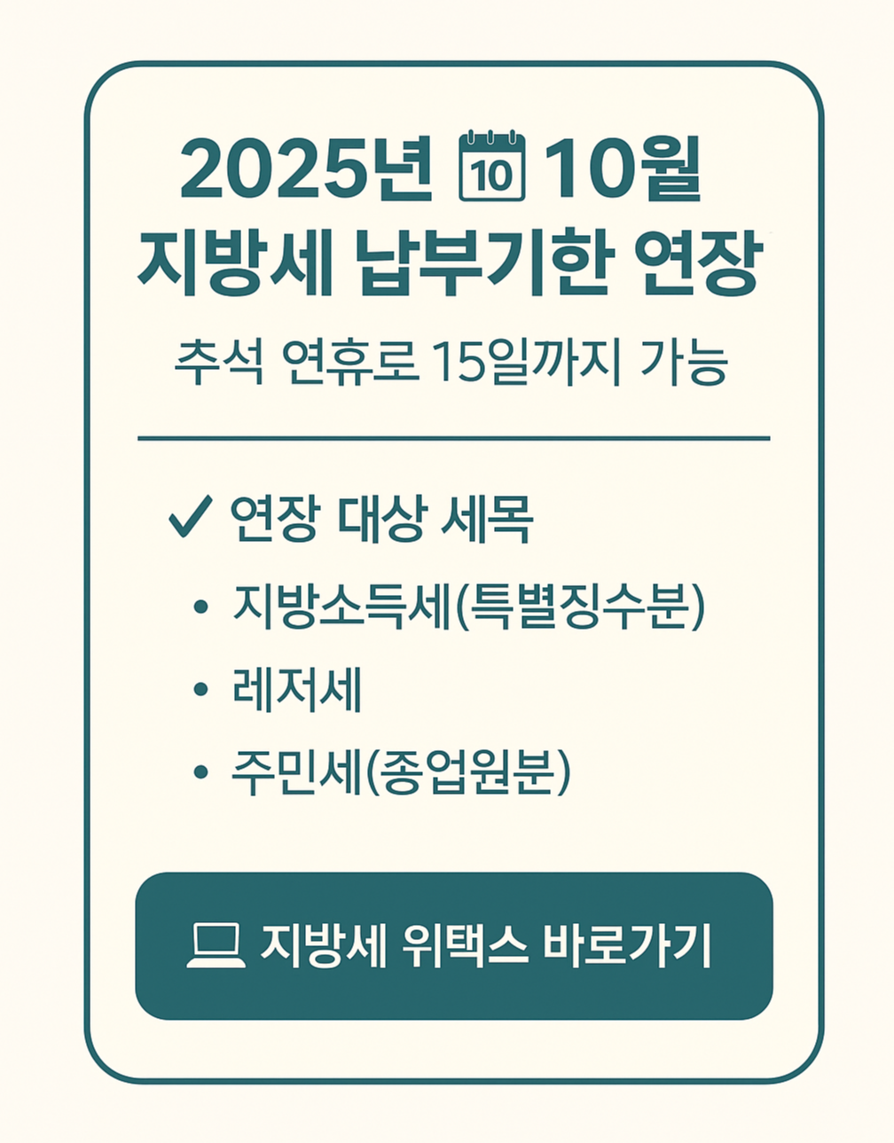 - 모든 지방세가 같은 방식으로 납부되는 건 아니니, 반드시 고지서 확인 필요